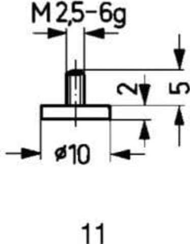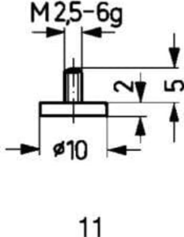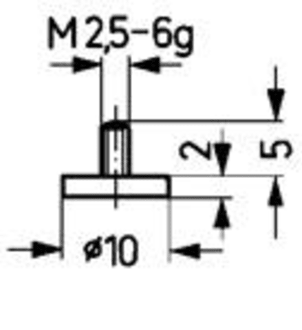 Messeinsatz aus StahlMesseinsatz für Messuhren und Feinzeiger mit Gewindeanschluss M2,5. Alle Messuhren und Feinzeiger werden standardmäßig mit Messeinsatz Nr. 1 aus gehärtetem Stahl geliefert.Messeinsätze mit Rubin- oder Saphirkugeln auf Anfrage.