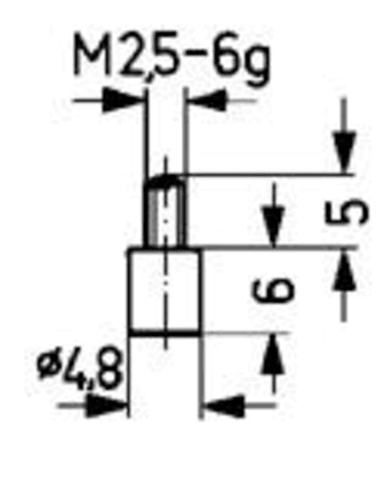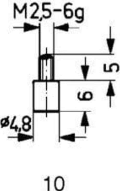 Messeinsatz aus StahlMesseinsatz für Messuhren und Feinzeiger mit Gewindeanschluss M2,5. Alle Messuhren und Feinzeiger werden standardmäßig mit Messeinsatz Nr. 1 aus gehärtetem Stahl geliefert.Messeinsätze mit Rubin- oder Saphirkugeln auf Anfrage.