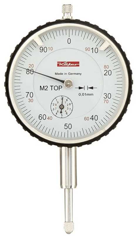 Messuhr M2 TOP• DIN 878 • Robustes Metallgehäuse • Einspannschaft Ø 8 mm h6, gehärtet und geschliffen • Drehbares Ziffernblatt zur Nulleinstellung • Mit verstellbaren Toleranzmarken • Auswechselb