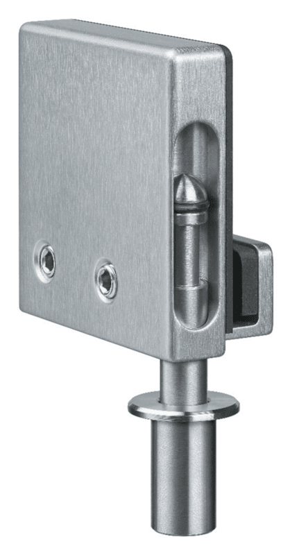 Standflügelverriegelung für Ganzglastüren mit Bodenhülse und Anschlag im Gehflügel