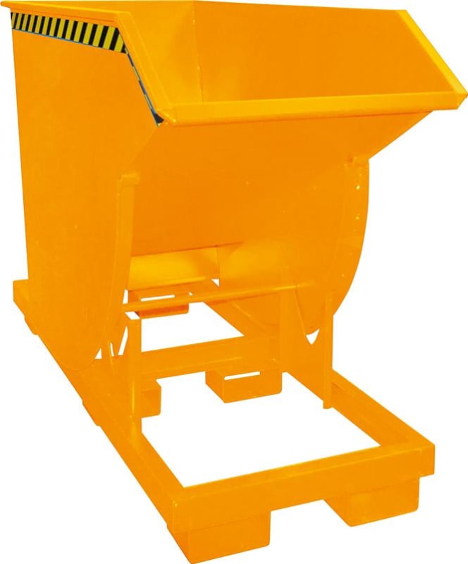 Kippbehälter Typ BKM, mit Abrollsystem • Wanne: aus Stahlblech mit umlaufendem Randprofil • Grundrahmen: aus Stahl mit Einfahrtaschen • Kompakte Bauform • Günstiger Lastschwerpunkt • Kippen in jeder Höhe per Seilzug vom Staplersitz aus möglich • Sicherung gegen unbeabsichtigtes Abrutschen und Auskippen