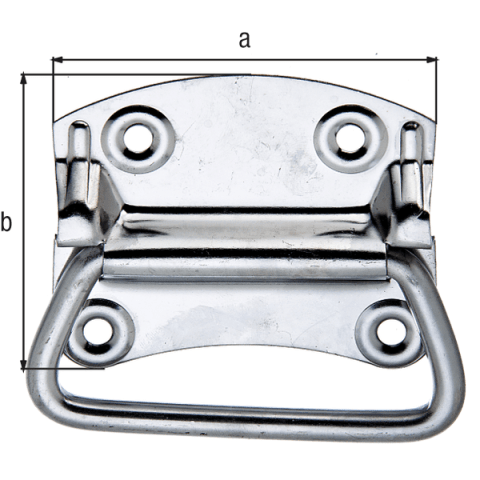 GAH Alberts Kistengriff; Oberfläche: matt; Basis: Kistengriff; Ausführung: für Koffer; Material: Edelstahl; Länge: 92 mm; Breite: 80 mm; Stärke: 1,2 mm; Schraublochdurchmesser: 6,7 mm; Tiefe: 12 mm; A