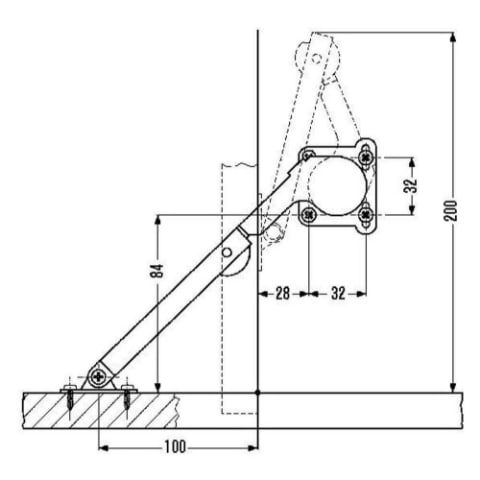 Klappenhalter für Holz- und Aluminiumklappen, für Scharniere mit Federmechanismus. Max. 90 Grad Öffnungswinkel.