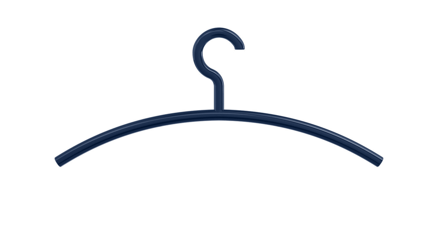 HEWI Kleiderbügel 570.99.001; Ausführung: zum Einhängen; Material: Polyamid; Einsatzbereich: Garderoben; Farbe: blau; Farbton: stahlblau; Breite: 450 mm; Höhe: 191 mm; Oberfläche: hochglanz; Bügeldurc