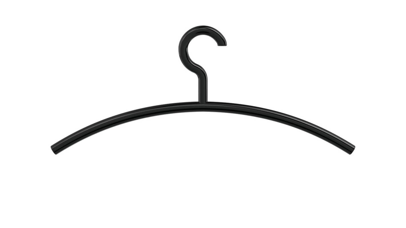 HEWI Kleiderbügel 570.99.001; Ausführung: zum Einhängen; Material: Polyamid; Einsatzbereich: Garderoben; Farbe: schwarz; Farbton: tiefschwarz; Breite: 450 mm; Höhe: 191 mm; Oberfläche: hochglanz; Büge