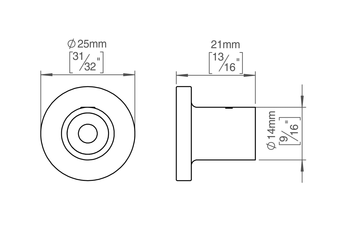 Knud Holscher Kollektion, Kleiderhaken, Ø25x21mm, mit Buchse und selbstschneidenden Schrauben. Hergestellt aus hochwertigem, rostfreiem Edelstahl AISI 316, der vor starker Korrosion schützt. 20 Jahre