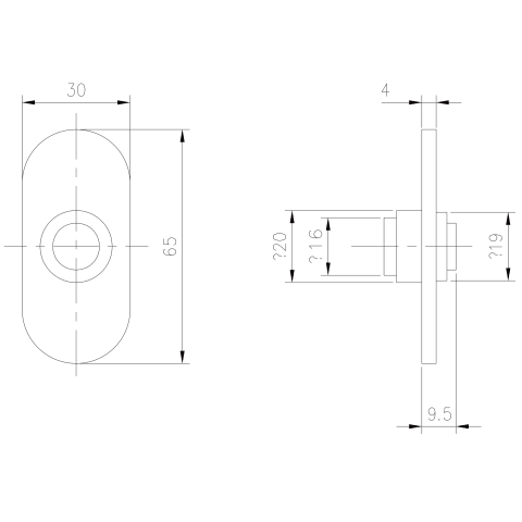 Klingelplatte oval, Ø65x30 mm. Hervorragendes klassisches dänisches Design von Knud Holscher. Material: Edelstahl AISI 316 \ Kunststoff. Maße: B: 30 mm, H: Ø 65 mm x T: 4 mm.