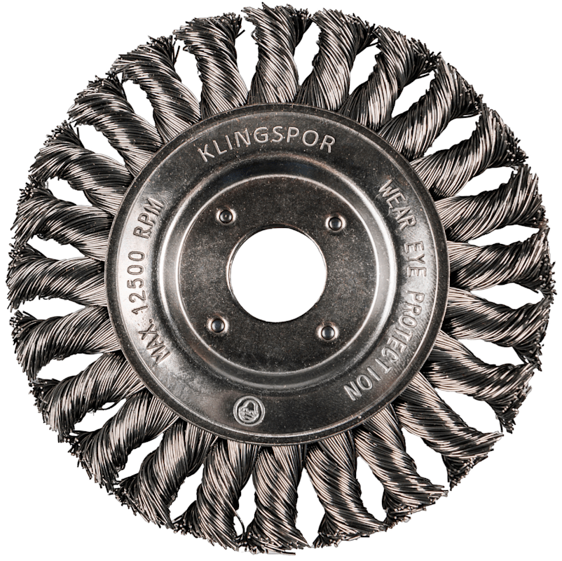 Rundbürste, gezopfter Draht fürEdelstahlStahl zur Vor- und Nachbearbeitung von Schweißnähten.