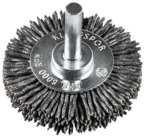 Rundbürste mit Schaft, Polyamidborsten für Edelstahl, NE-Metalle, HolzSchleifborsten aus Polyamid mit Silizium Korn durchsetzt für arbeiten mit leichtem Anpressdruck
