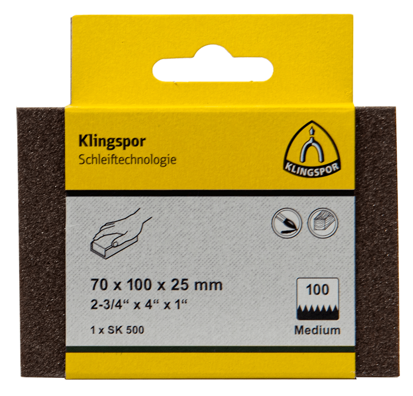Flach und hochkant einsetzbar (vierseitig einsetzbar) - Für ebene und profilierte Werkstückoberflächen geeignet durch flexiblen Schaumstoffkern - Robust, wasch- und wiederverwendbar