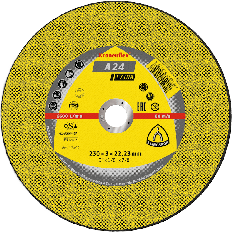Meesenburg Artikelbezeichnung: KLINGSPOR TRENNSCHEIBE A24EXTRA GERADE 230X3X22,23MM METALL UNIVERSAL 13492