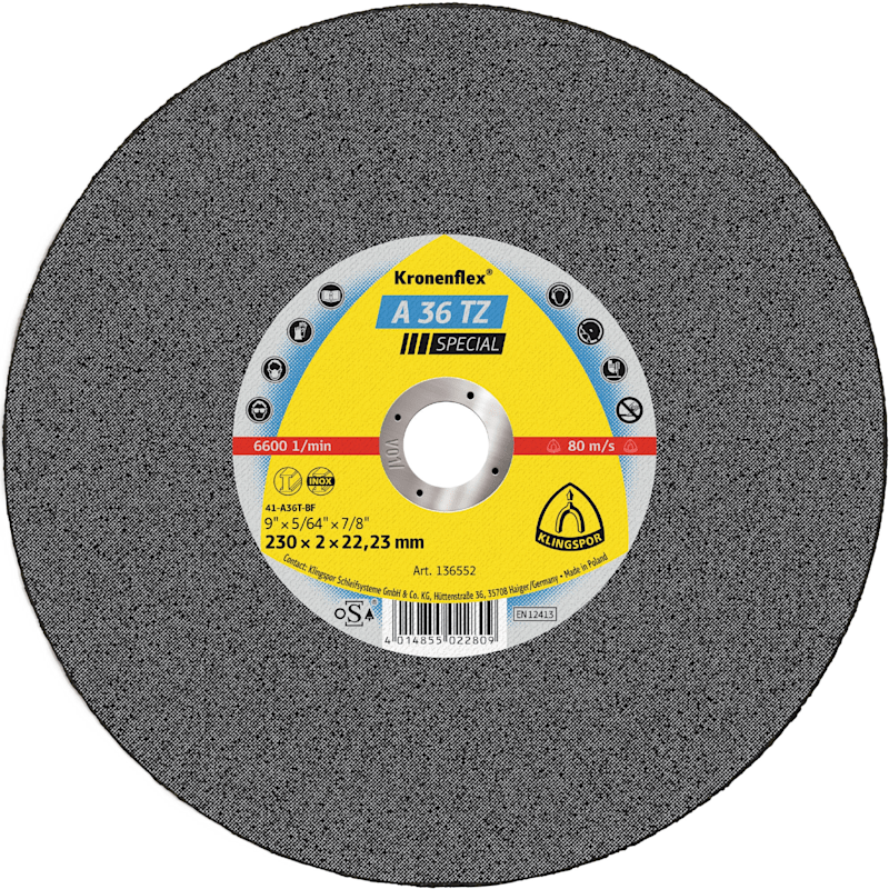 Hochleistungs-Trennscheibe mit guter Aggressivität und hoher Standzeit, leichtes Arbeiten mit geringem Anpressdruck.