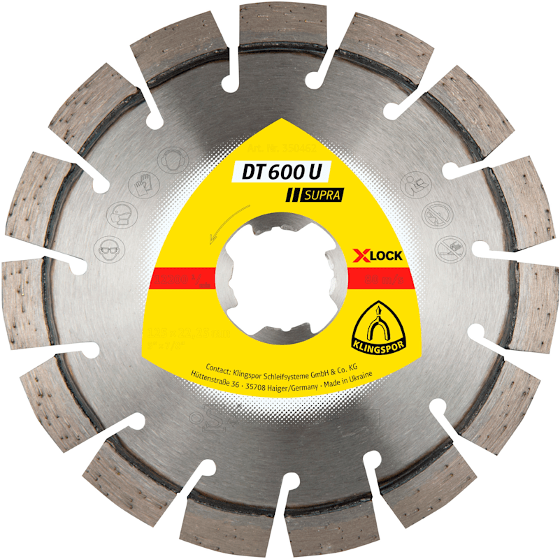 X-LOCK-Diamant-Trennscheibe DT 600 U Supra• Saubere Kanten, hohe Aggressivität • X-LOCK-Aufnahme für komfortable und schnelle Werkzeugwechsel • Zum Schneiden von Beton, Baustellenmaterial und Dachzi