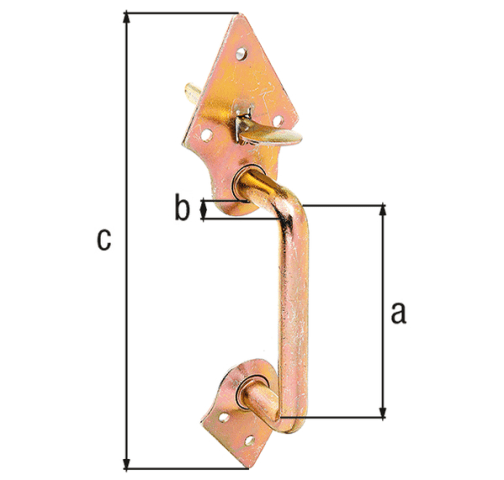 GAH Alberts Klinkgriff; Material: Stahl; Befestigungsart: zum Anschrauben; Oberfläche: galvanisch gelb verzinkt; Basis: Klinkgriff; Schraublochdurchmesser: 6mm; Bügeldurchmesser: 15mm; Bügellänge: 105