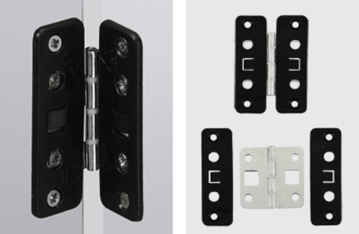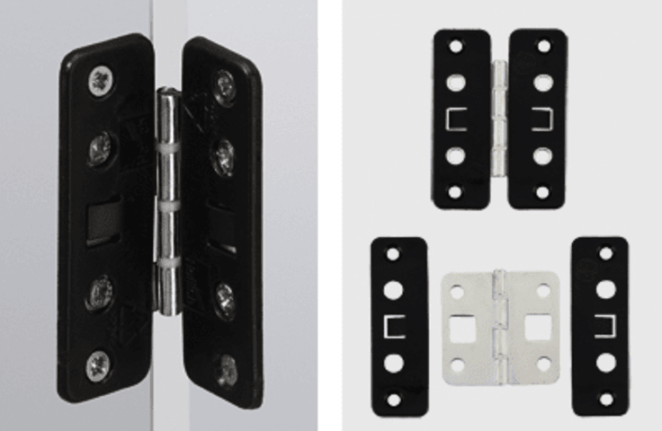 • Mittelscharnier für Falttüren• Montage mittig oder mit Drehpunktversatz möglich• Die einzelnen Türflügel werden blitzschnell durch einfaches Verklipsen der Scharniere im Reißverschlussprinzip von