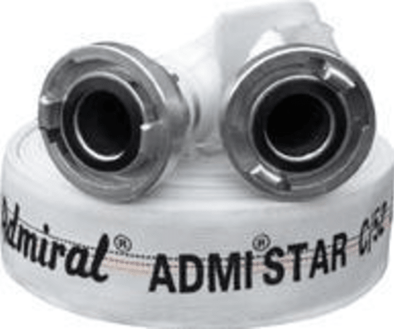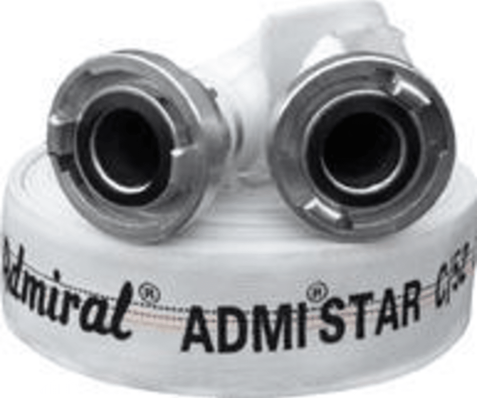 Industrie-Bauschlauch Admi®Star C- Für Standardanwendungen- Komplett mit langen, wiederverwendbaren und geschützten Storzkupplungen- Innen gummiert- Verrottungsfest- Abriebfest- Sehr flexibel- Erhöhte FlammbeständigkeitSeele: NR/SBR Gummi, schwarz, glattDecke: Polyestergarn, hell, mit KennstreifenTemperaturbeständigkeit: -20 °C bis + 80 °C