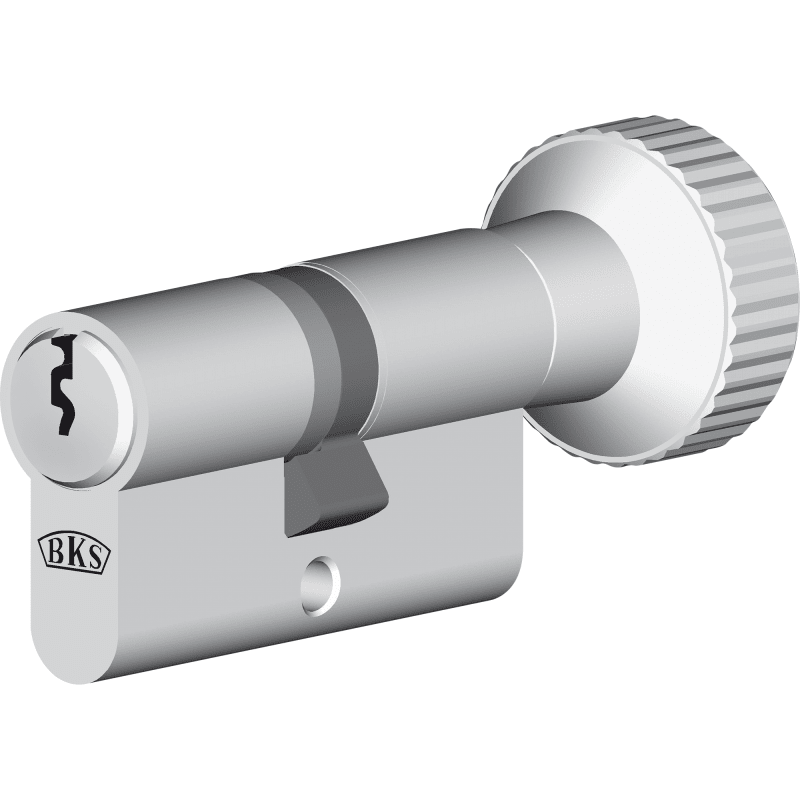 BKS Profil-Knaufzylinder 8806; Ausführung: 5-stiftig,mit Drehknopf; Material Zylinder: Messing; Durchmesser Stulpschraube: M5; Norm: DIN EN 18252,DIN EN 1303; Einsatzbereich: Tür; Basis: Profil-Knaufz