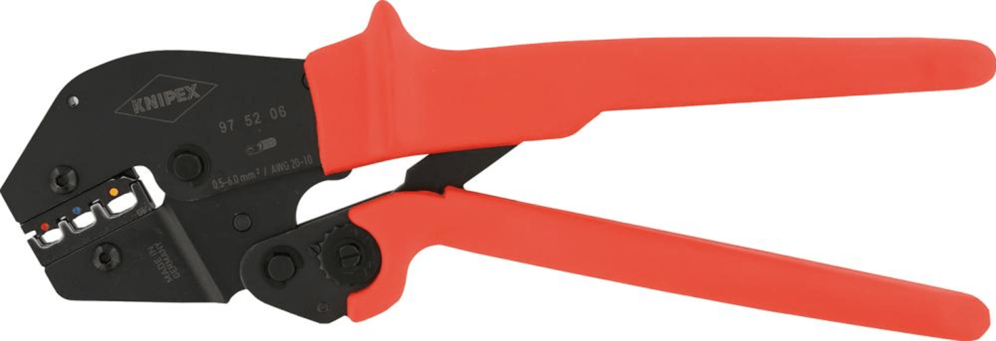 Crimp-Hebelzange Nr. 97 52 06• Zange brüniert • Griffe mit Kunststoffhüllen • Chrom-Vanadium-Elektrostahl, ölgehärtet • Öffnungsfeder • Gleichbleibend hohe Crimpqualität durch Zwangssperre, entrie
