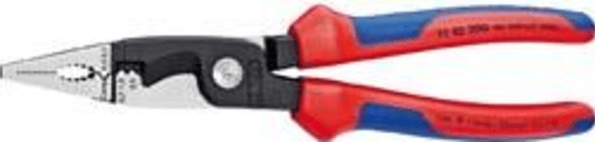 • Universell einsetzbar in der Elektroinstallation zum Biegen, Entgraten, Kabelschneiden, Abisolieren, Crimpen von Aderendhülsen (Trapezpressung) sowie Greifen von Flach- und Rundmaterial