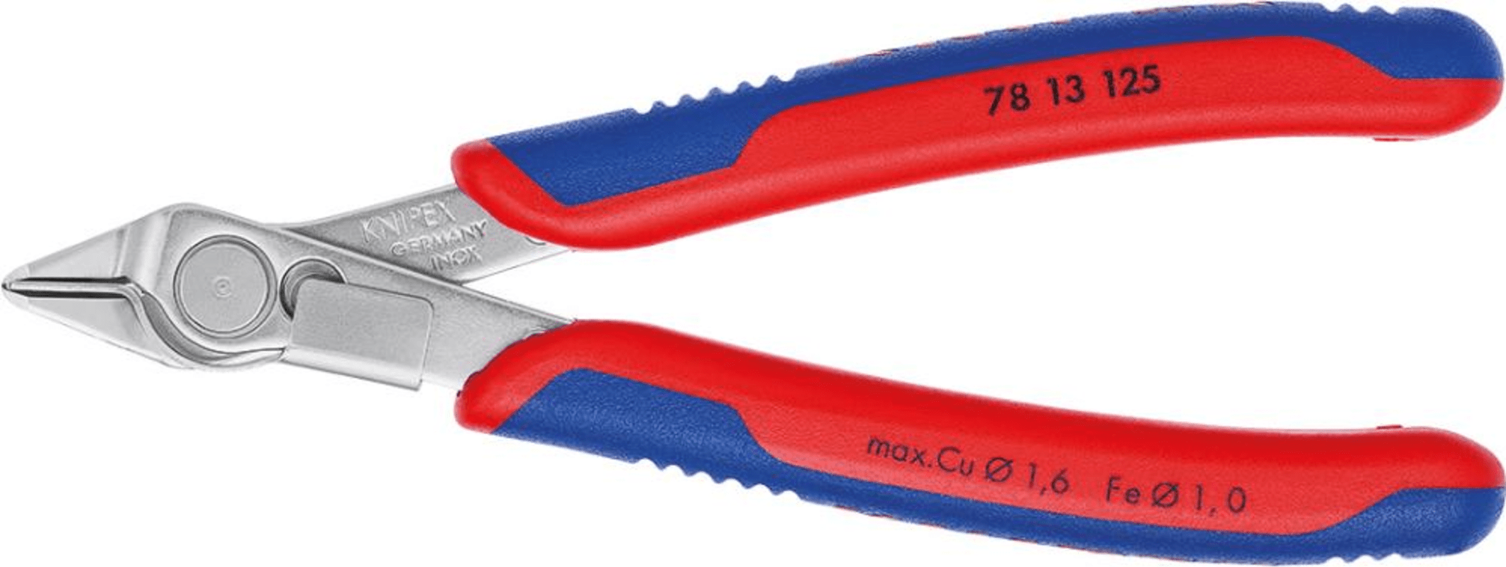 Elektronik-Seitenschneider Electronic Super Knips® Nr. 78 13 125• Kopf poliert • Griffe mit Mehrkomponenten-Kunststoffhüllen • Rostfreier Stahl • DIN ISO 9654 • Gelenk mit Edelstahlniet • Mit Öff