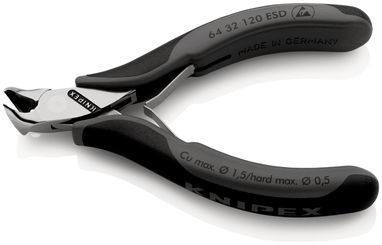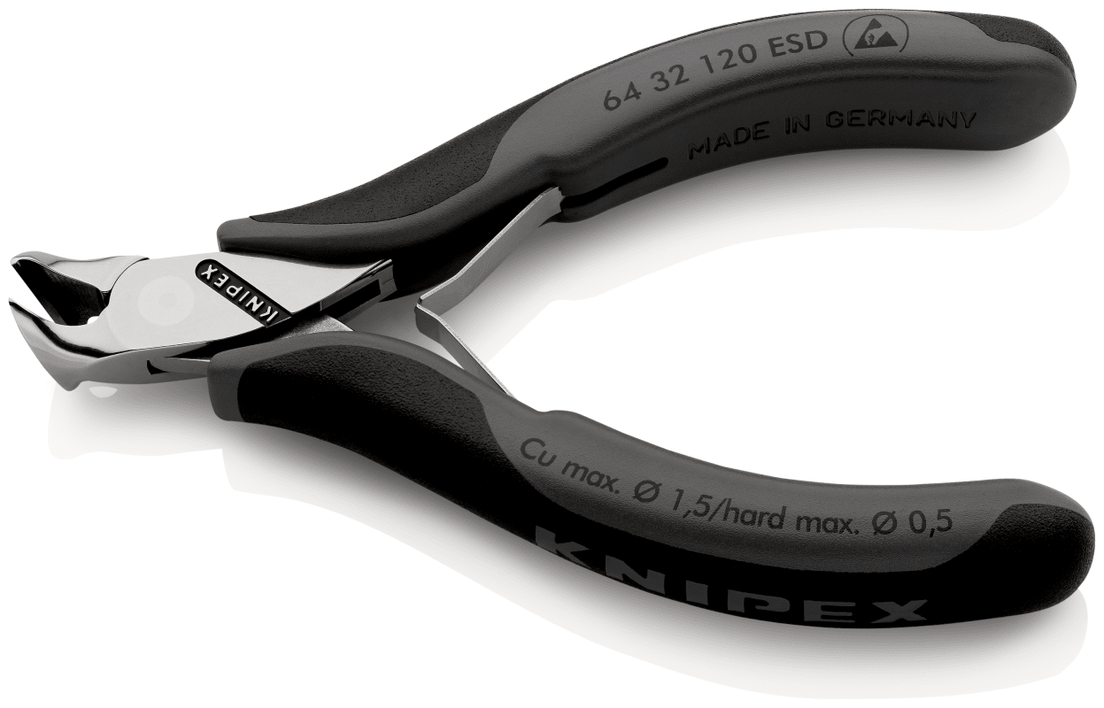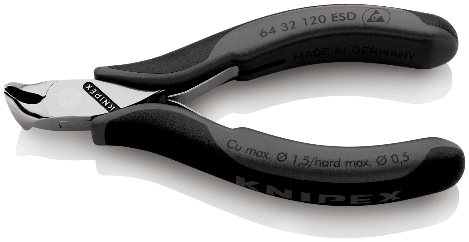 KNIPEX ELEKTRONIK SCHRÄG-SCHNEIDER 64 32 120 ESD/120 MM DIN ISO 9654 M.FED/FAC POL STARKW. HÜ. FORM3