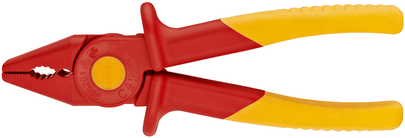 VDE-Kunststoff-Greifzange Nr. 98 62 01• Glasfaserverstärkter Kunststoff • Griffe mit Weichkunststoff • Isoliert bis 1000 V nach EN 60900 • Unempfindlich gegen Magnetfelder und funkenfrei • Für die
