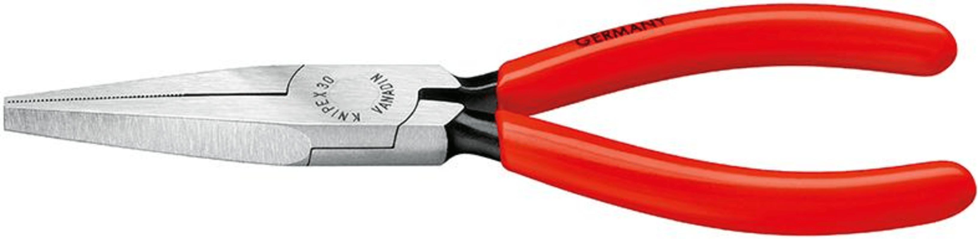 Langbeckzange Nr. 3011DIN ISO 5745, lange, flache Backen, Greifflächen gezahnt, Kopf poliert, Griffe mit Kunststoff überzogen.Aus Chrom-Vanadium-Elektrostahl, geschmiedet, ölgehärtet, hoch belastbare und verschleißarme Greifzangen.