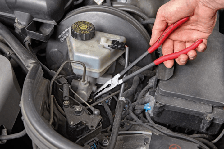 Montierzange Nr. 28 81 200• Kopf poliert • Griffe mit Kunststoff überzogen • Spezial-Werkzeugstahl, ölgehärtet • DIN ISO 5743 • 45° abgewinkelte, flachrunde Backen • Greifflächen mit Querprofilen