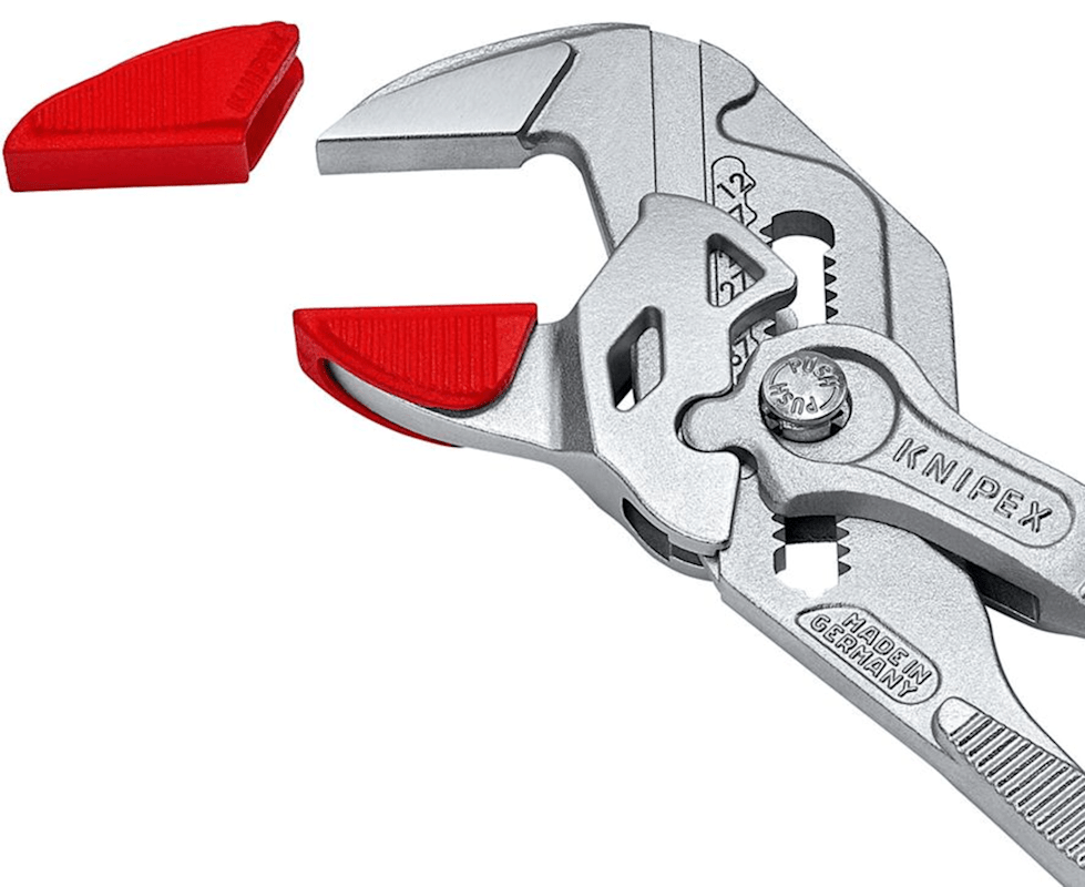 Schonbacken-Set für Zangenschlüssel• Kunststoff • Einfache Montage und Fixierung am Werkzeug • Wenn die Backen des Zangenschlüssels beschädigt wurden • Für beschädigungsfreies Greifen, Halten und P