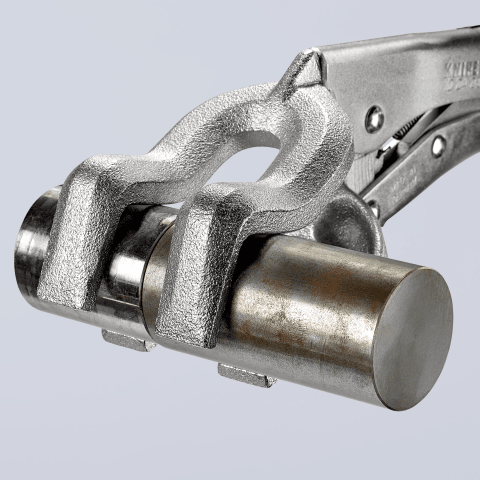 Zange glanzverzinkt, spannt zentrisch nebeneinander liegendes Rund- oder Rohrmaterial