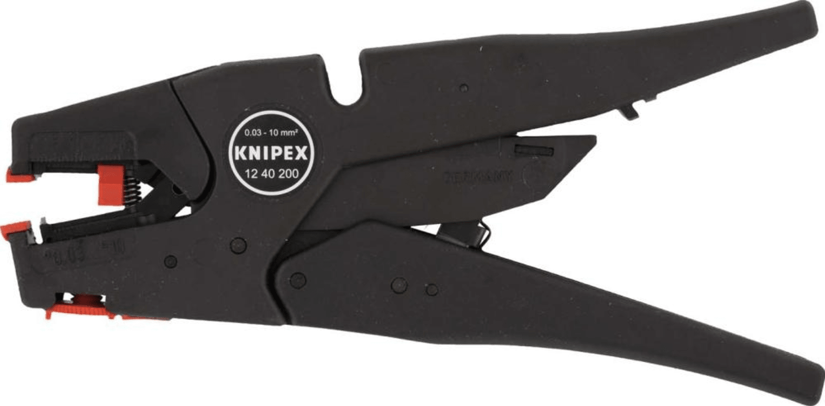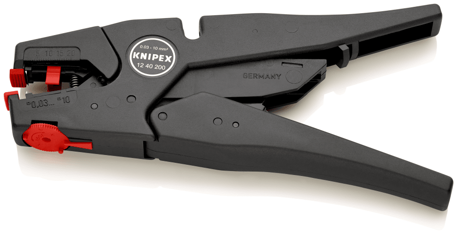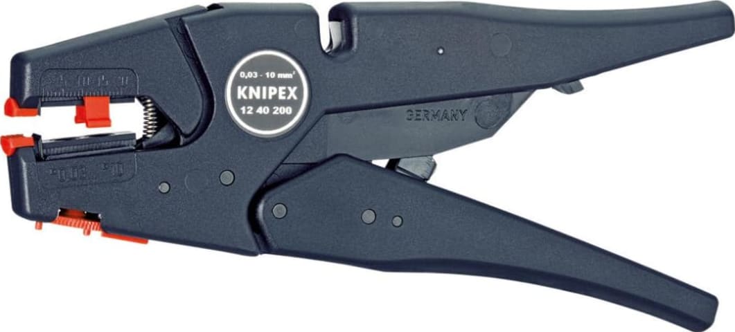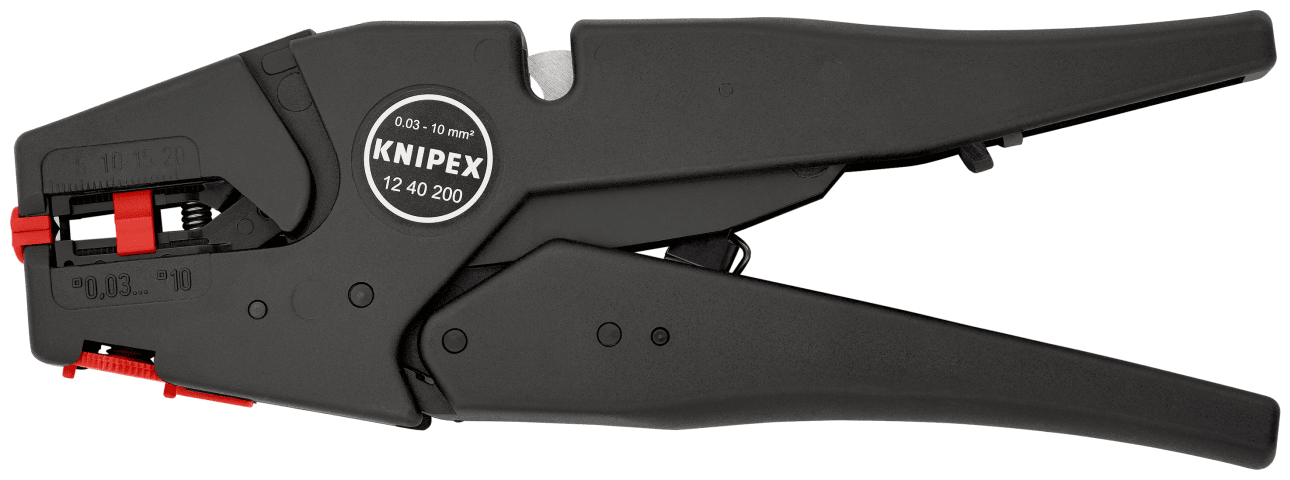 Automatische Abisolierzange Nr. 12 40 200• Gehäuse aus glasfaserverstärktem Kunststoff • Messer aus Spezial-Werkzeugstahl, ölgehärtet • Öffnungsfeder • Selbsteinstellende Anpassung an die verschied