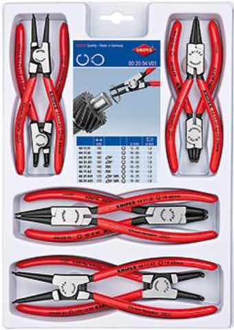 Sicherungsringzangen-Satz Nr. 00 20 04 V01• Kopf poliert • Griffe mit Kunststoff überzogen • Zangenkörper und Spitzen aus Chrom-Vanadium-Stahl, geschmiedet, ölgehärtet • DIN 5256 C, DIN 5254 A, DIN