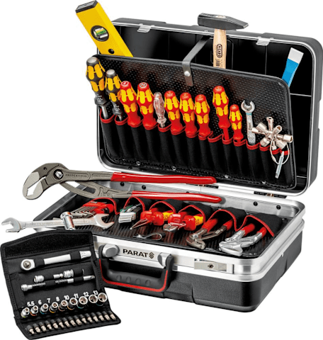 Werkzeugkoffer Nr. 00 21 21 HK S Vision 27 Sanitär• Aus schlagfestem ABS-Kunststoff • Mit Werkzeug- und Abdeckplatten aus Con-Pearl® mit 21 Einsteckfächern und 1 Klemmfach • Bodenschale frei unterte