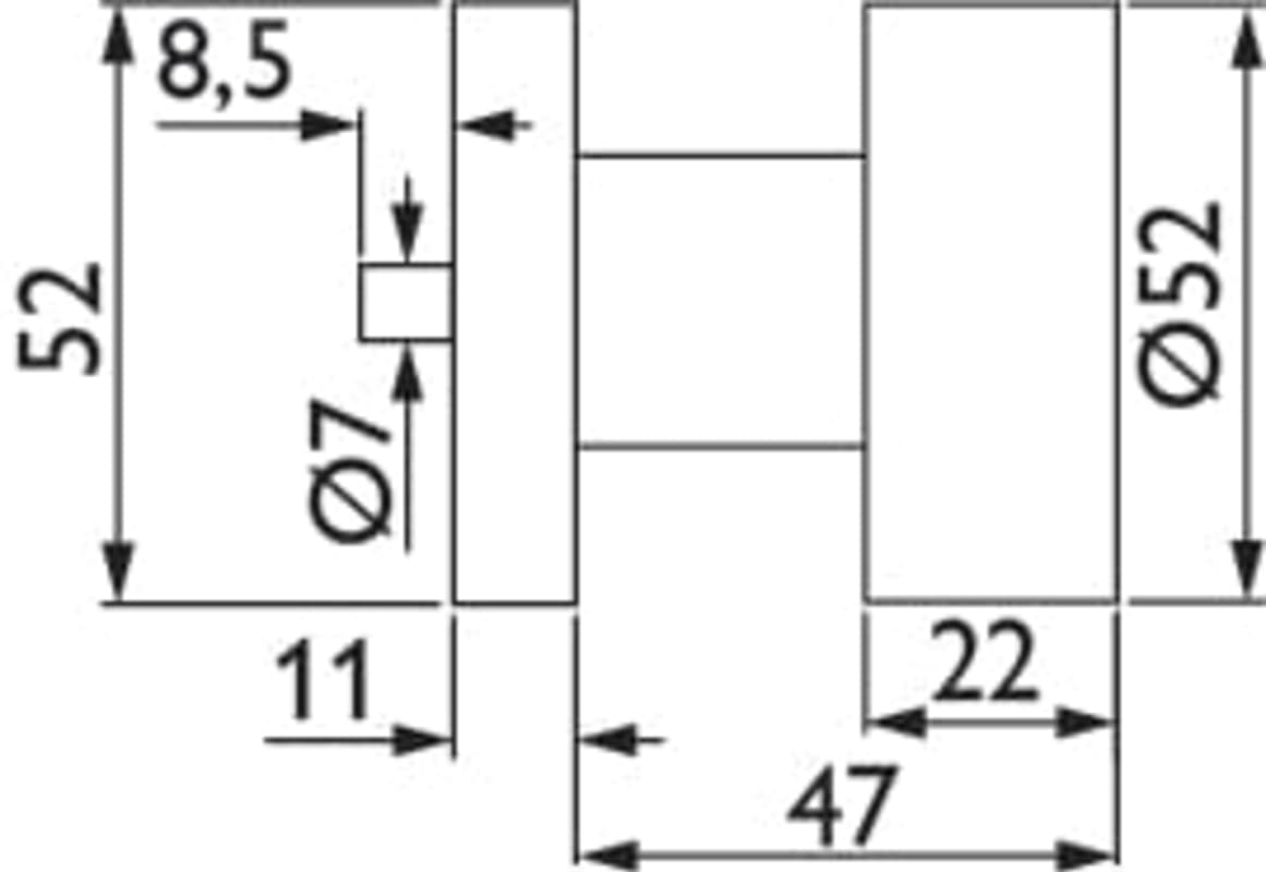 Knopf 3127 K auf Rosette 2311 SC, mit kantiger Smart-Clip Unterkonstruktion, Knopf fest montiert FIX (nicht drehbar), ohne Wechselstift, Oberfl. 60 (Edelstahl matt)