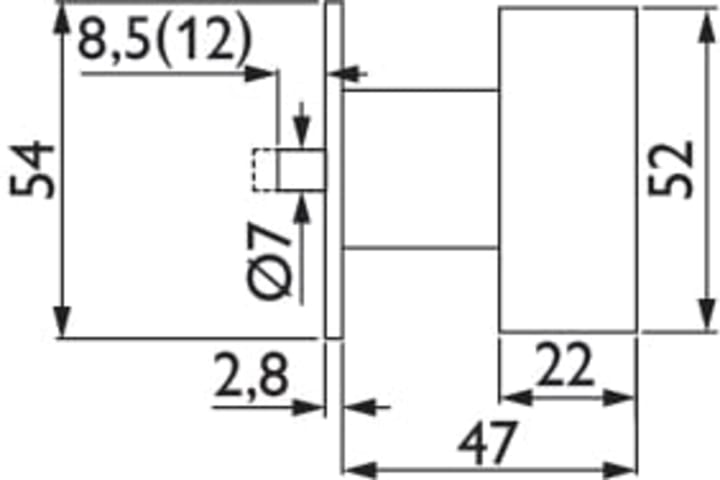 Knopf 3127 K auf Rosette 2611 kantig, Unterkonstruktion inkl. Gewindenocken, mit Wechselstift 8 x 70 mm, inkl. Schrauben für Türstärke 38 - 45 mm, Oberfl. 61 (Edelstahl poliert)