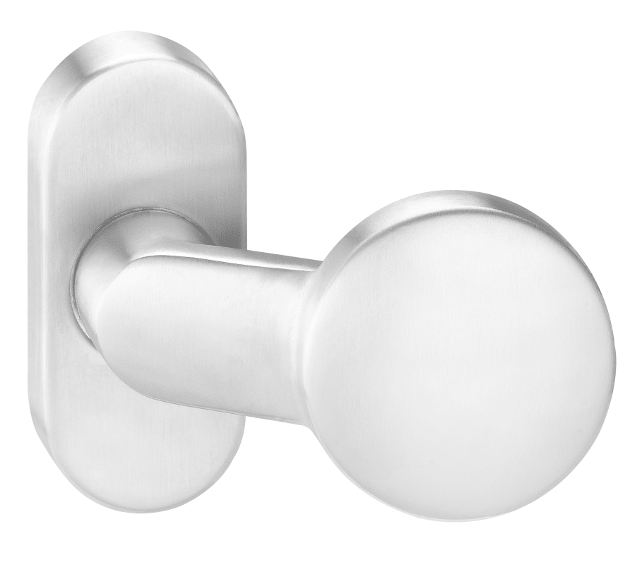 Rahmentürgriff auf ovaler Rosette, Serie ARES. • fest/drehbar • rechts/links verwendbar • Clip-Deckrosette auf Stahl-Grundkonstruktion • verdeckte Verschraubung, ohne Zubehör