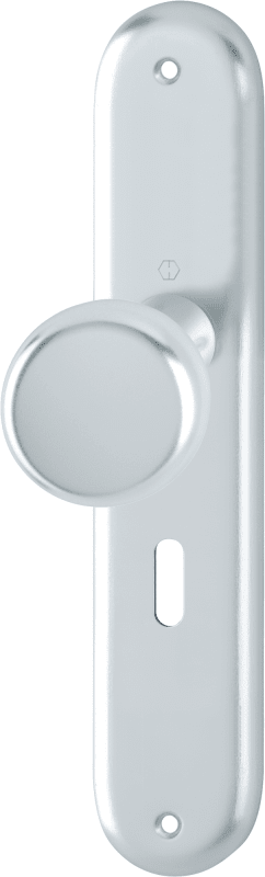 HOPPE Halbgarnitur 53/273P, Langschild, oval, Buntbart gelocht, Entfernung 56mm, DIN Links-Rechts, ohne Stütznocken, naturfarben eloxiert, drehbar