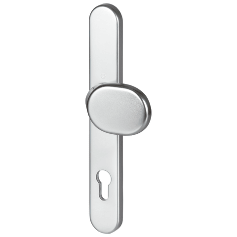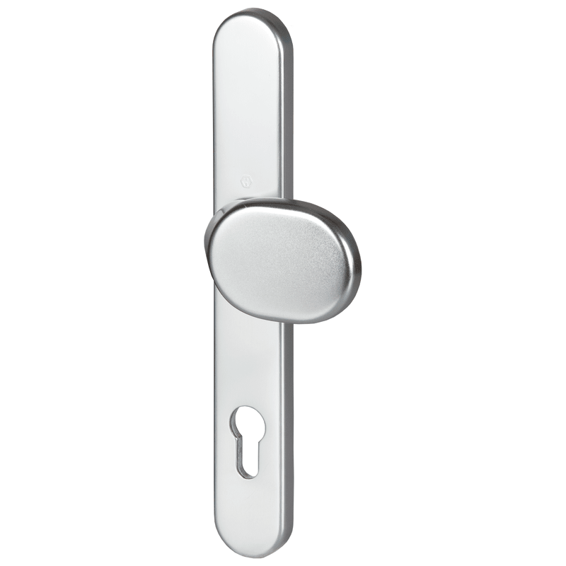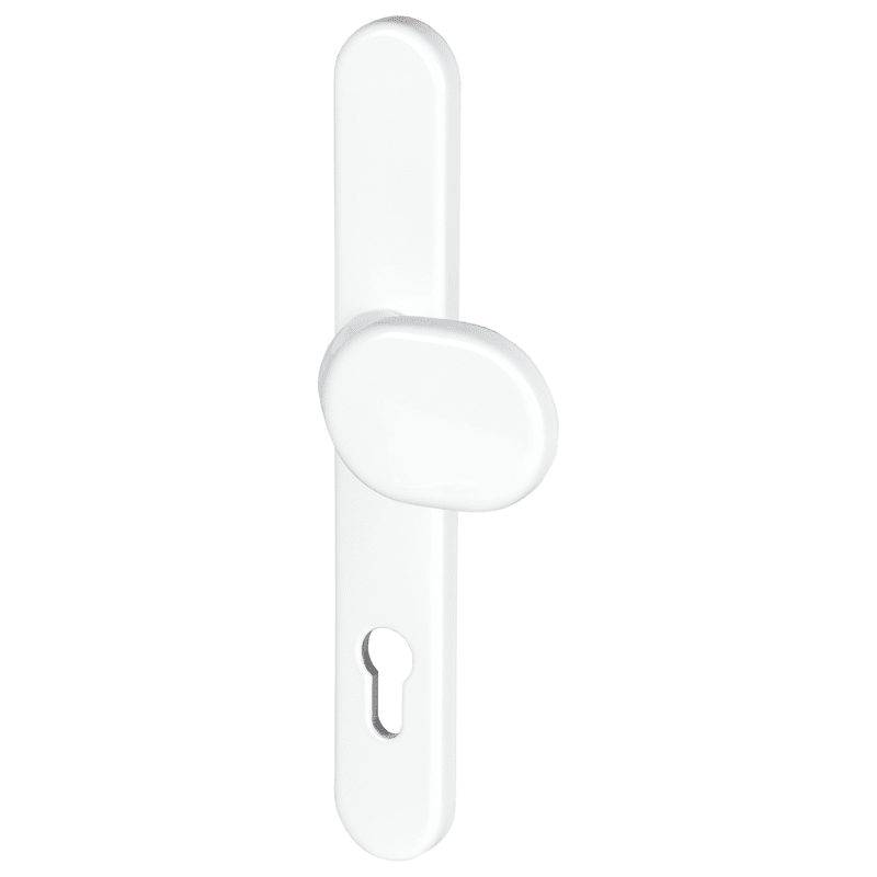 HOPPE Halbgarnitur 86G/3357N, Langschild, oval, Profilzylinder gelocht, Entfernung 92mm, DIN Links-Rechts, mit Stütznocken, verkehrsweiß beschichtet