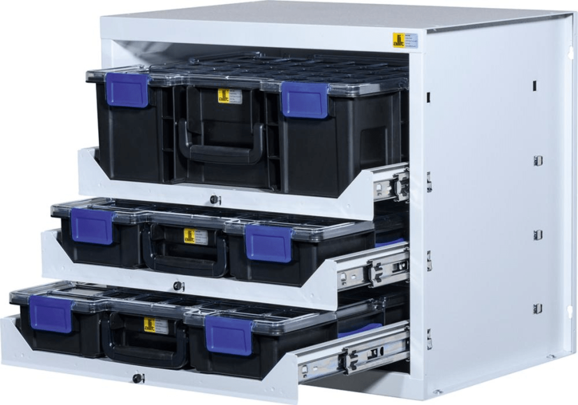 • Stabiler 4-fach-Kofferschrank für Kleinteilekoffer