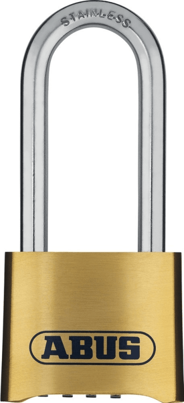 Zahlenschloss 180IB/50HB63 B/SB Das Vorhangschloss 180IB ist ein wetterfestes Schloss mit Zahlencode für den Einsatz im Outdoor-Bereich. Wenn Sie im Outdoor-Bereich mittlere Werte bzw. Gegenstände bei mittlerem Diebstahlrisiko absichern möchten, kann das Zahlenschloss 180IB eine gute Lösung für Sie sein. In Küstengebieten, in Hafennähe oder auf hoher See sichert das 180IB Ihre Werte zuverlässig. Der Schlosskörper besteht aus geschmiedetem Messing, der Bügel aus hochwertigem Edelstahl. Somit ist das Schloss besonders gut vor Wasser geschützt. Geöffnet werden kann es nur mit einem individuell festgelegten vierstelligen Zahlencode. Produktvorteile • Wetterbeständiges Zahlenschloss • Individuell einstellbarer Zahlencode Technische Daten • Körper aus geschmiedetem Messing • Bügel aus Edelstahl • 4-stelliger, individuell einstellbarer Code • Innenteile aus rostfreiem Material • Präzisions-Schließwerk mit zusätzlichem Schutz gegen Manipulation
