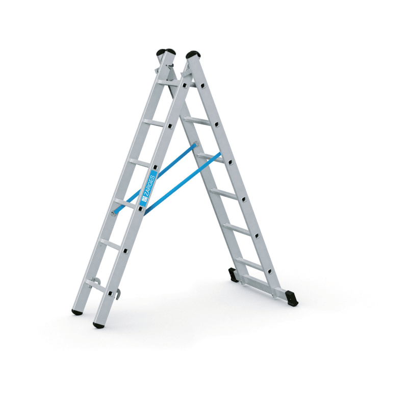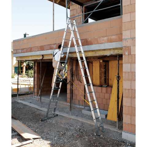 Zwei Leitern in einem: Steh- und Schiebeleiter in Kombination für sicheren Stand.