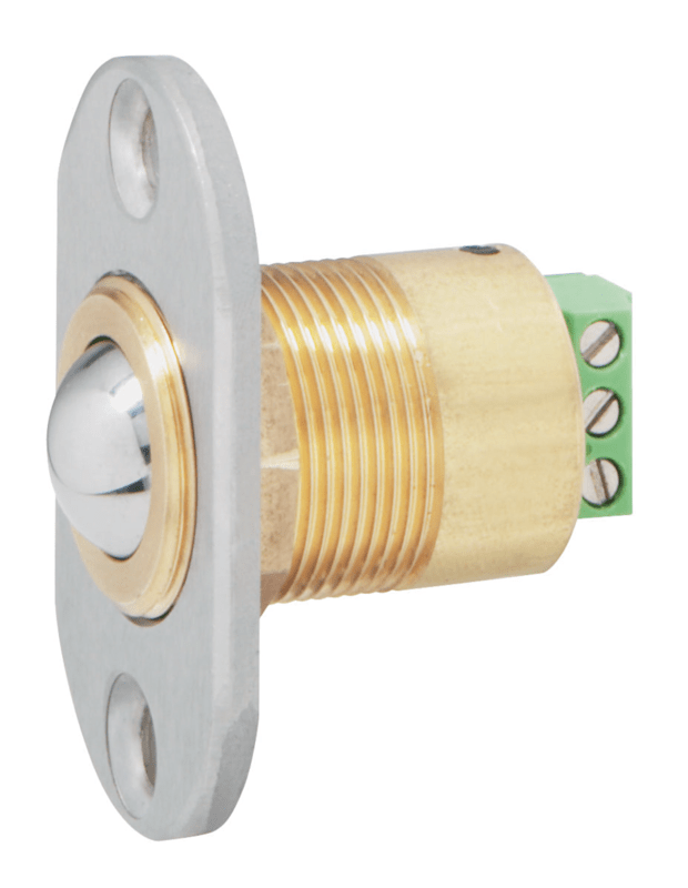 Dieser Türkontakt ist eine Weiterentwicklung des Modells 10400. Er zeichnet sich besonders durch seine robuste Ausführung mit Stahlkugel und Schraubgewinde zur flexiblen Einstellung auf unterschiedliche Türgeometrien aus.