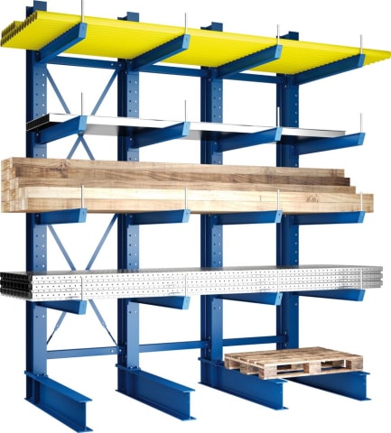 Kragarmregal META MULTISTRONG Heavy, einseitig • Zur liegenden Lagerung von Tafel- und Plattenware • Profile warmgewalzt, Ständer- und Fußprofile werden miteinander verschraubt • Statische Berechnung