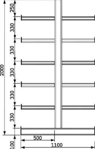 Meesenburg Artikelbezeichnung: KRAGARMREGAL ATLAS ST L5400MM DOPPELSEITIG 20097840