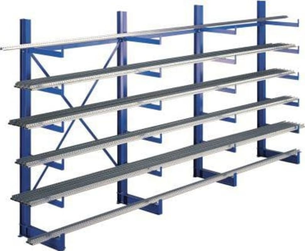 Kragarmregal K1000, einseitig • Ständer mit verschweißten Kragarmen • Profile warmgewalzt • Material: Stahl • Profil Ständer/Kragarme: IPE-Profil/U-Profil • Oberfläche: RAL 5010 enzianblau • Traglast