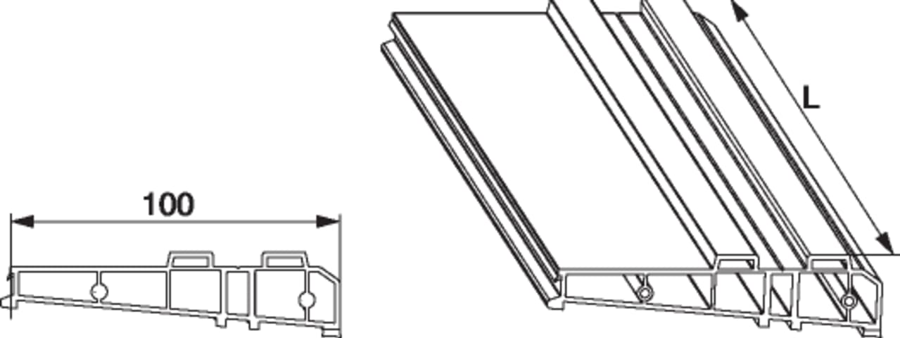 Zwischenprofil in PVC mit Einhängenut B=100mm Nut 42x4 68/28 L=2.500mm silber