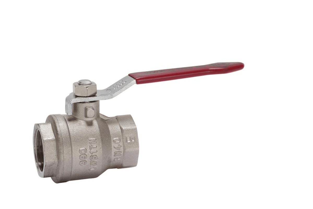 Kugelhahn, Baureihe 990• Ausblassichere vernickelte Messingschaltwelle • Flügelgriff bis 1.1/4" (DN 32), ISO-T-Griff bis 2" (DN 50), Hebelgriff für alle Nennweiten • Wasser, Öl, Druckluft, Kraftsto