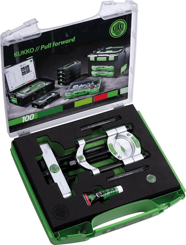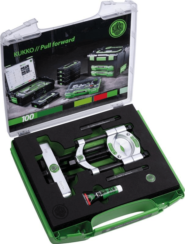 Trennvorrichtungs-Satz Nr. 17-A• Zum Abziehen von Kugellagern, Rollenlagern, Innenringen und anderen bündig aufsitzenden Teilen Lieferung : In i-BOXX. Inhalt: 1 Trennvorrichtung mit Schnellspann