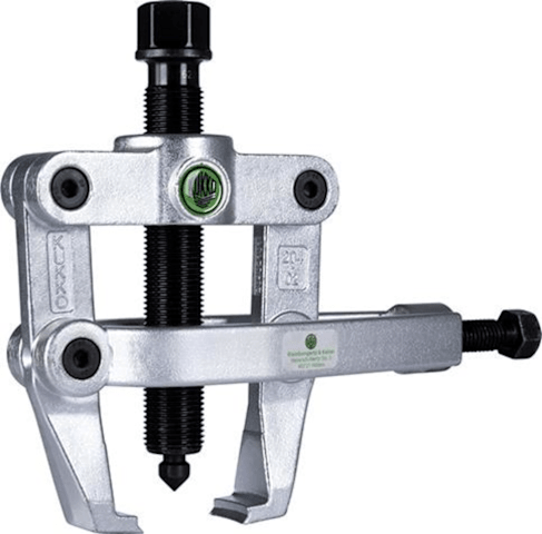 Lagerabzieher, Nr. 204-0Mit seitlicher Spannzwinge zum Abziehen bündig anliegender Kugellager, Lagerringe und ähnlicher Teile in Feinmechnanik, Elektrowerkstätten, bei Druckluftinstandsetzung usw. Die Krallen der Abzugshaken greifen beim Anziehen der Spannzwinge unter das abzuziehende Teil und krallen dies mit großer Kraft bereits vor dem eigentlichen Abziehvorgang los.