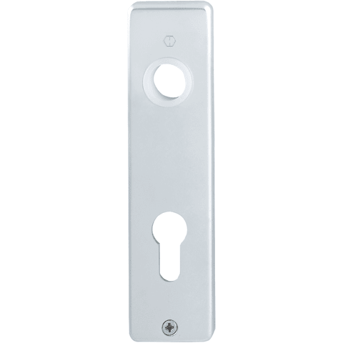 HOPPE-Aluminium-Kurzschild-Paar für Innentüren: • Lagerung: für Türgriffe lose, wartungsfreie Gleitlager • Befestigung: sichtbar, Kunststoff-Anschlagplatten und Mehrzweckschrauben